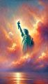 Dawn's Embrace: A Mosaic Rendition of Lady Liberty at Sunrise
