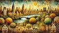 Vibrant Mosaic of New York Skyline Embracing Autumn's Warmth