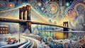 Whimsical Winter on Brooklyn Bridge: A Surreal Snowscape in Vivid Colors