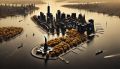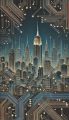 Futuristic New York Cityscape Crafted in Circuit Board Style