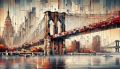 Ethereal Watercolor Vision of Brooklyn Bridge and Manhattan Skyline