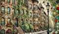 Whimsical Fusion of Cubism and Klimt on Greenwich Village Brownstones