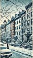 Vivid Cubist Interpretation of Greenwich Village Brownstones