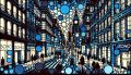 Soho Nights: A Cubist Interpretation of Urban Dusk in Cobalt Blue