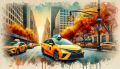 Autumn in New York: Vibrant Taxi Scene on Fifth Avenue