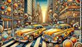 Vibrant Retro Taxi Cabs in a Pop Art-Inspired New York Cityscape