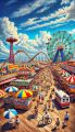 Whimsical Panoramic View of Coney Island's Vivid Amusements