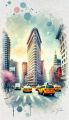 Whimsical Watercolor of New York's Iconic Flatiron Building