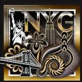 Artistic Fusion of New York Landmarks in Black and Gold Tones