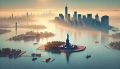 Serene Sunset in Soho: Decopunk Artistry Meets Urban Minimalism