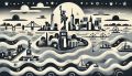 Cubist Rendition of New York Harbor with Iconic Landmarks