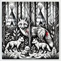 Mystical Encounter: Red Fox Family in a Stylized Forest