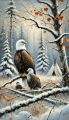 Majestic Bald Eagles Overlooking Snowy Forest with Tepee