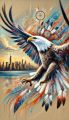 Majestic Bald Eagle Over New York Skyline with Native Motifs