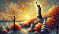 Autumn Meets Winter at Sunrise: The Statue of Liberty Transformed