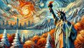 Sunrise Embrace: A Van Gogh-Inspired Vision of Liberty in New York