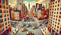 Vibrant Cubist Interpretation of New York's Fifth Avenue