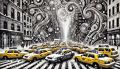 Captivating Surreal Street Scene of Vintage Yellow Cabs in NYC