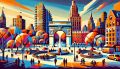 Whimsical DecoPunk Interpretation of MoMA in a Colorful Dreamscape