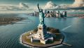 Majestic Statue of Liberty Overlooking the Bustling New York Skyline