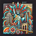 Fusion of Cultures: Cubist New York Skyline Meets First Nations Artistry