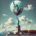 Surreal Vision of Liberty: A Monumental Balloon and Iconic Statue