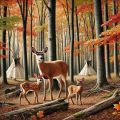 White-Tailed Deer and Fawns Amidst Autumn's Fiery Palette