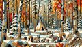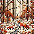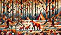 Autumn Meets Winter: A Cubist Forest Watched by Red Foxes