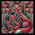 Autumn Whispers in a Cubist Forest: Red Foxes Among Falling Leaves