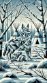 Enigmatic Cubist Coyotes in a Snow-Covered Forest: A Visual Exploration