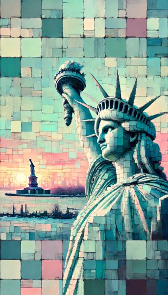 Title: Dawn Awakens over Liberty in Cubist Hues: A Modern Art Rendition Photo ID: 41293