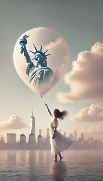 Title: Surreal Dreams of Liberty - A Girl and a Floating Icon Over NYC Photo ID: 41327