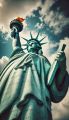 Majestic View of the Statue of Liberty Against a Dramatic Sky