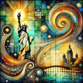Abstract Cubist Tribute to New York and the Iconic Lady Liberty