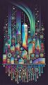 Abstract Cubist Depiction of Winter Holidays at Rockefeller Center