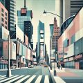 Spring Night in Times Square: A Cubist-Inspired Urban Scene