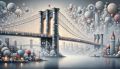 Cubist Dawn Over Brooklyn Bridge: A Fusion of Geometry and Mist