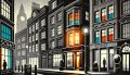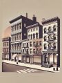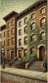 Enchanting Cubist-Style Illustration of Greenwich Village Brownstones