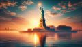 Golden Dawn at the Statue of Liberty, A Majestic Morning View