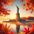Golden Sunrise Embraces Liberty Amidst Autumn’s Blaze in New York