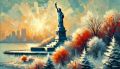 Sunrise Embrace at Liberty: A Vivid Winter-Autumn Fusion