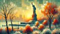 Autumn Dawn Embraces Liberty: A Cubist Sunrise in New York
