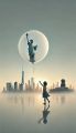 Ethereal New York Morning: Child Reaching for Balloon Liberty