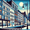 Dusk Falls Over Soho: A Stylized Minimalist Urban Canvas