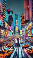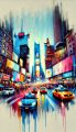 Vibrant Brushstrokes Capture Times Square's Electric Pulse