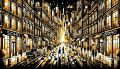 Dusk Descends Over Abstract Soho: A Cubist Interpretation in Gold and Black