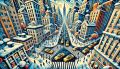 Fusion of Decopunk and Cubism in a Vivid New York Art Piece