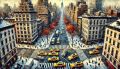 Enchanted Winter Dreamscapes: Cubist New York in Snowy Splendor