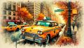 Autumn Leaves and Yellow Cabs: A Cubist Perspective on Fifth Avenue
