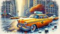 Vintage Yellow Taxi Brightens Snowy Fifth Avenue in NYC